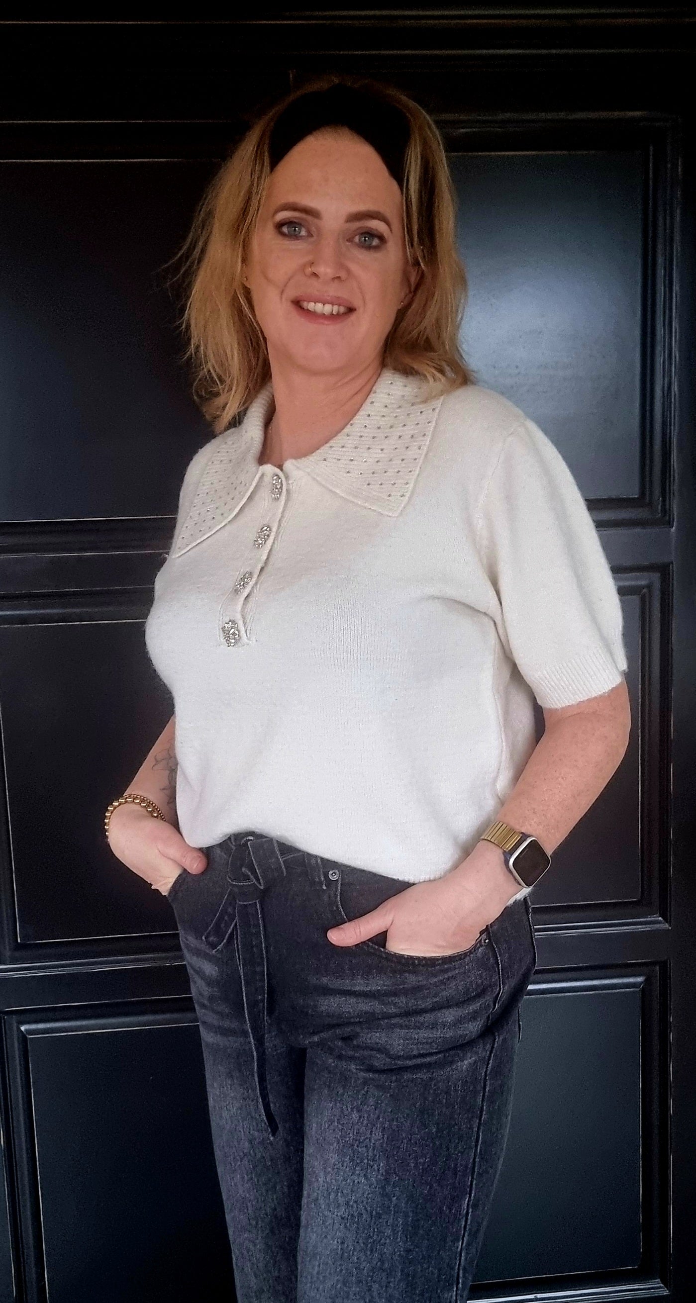Trui korte mouw strass