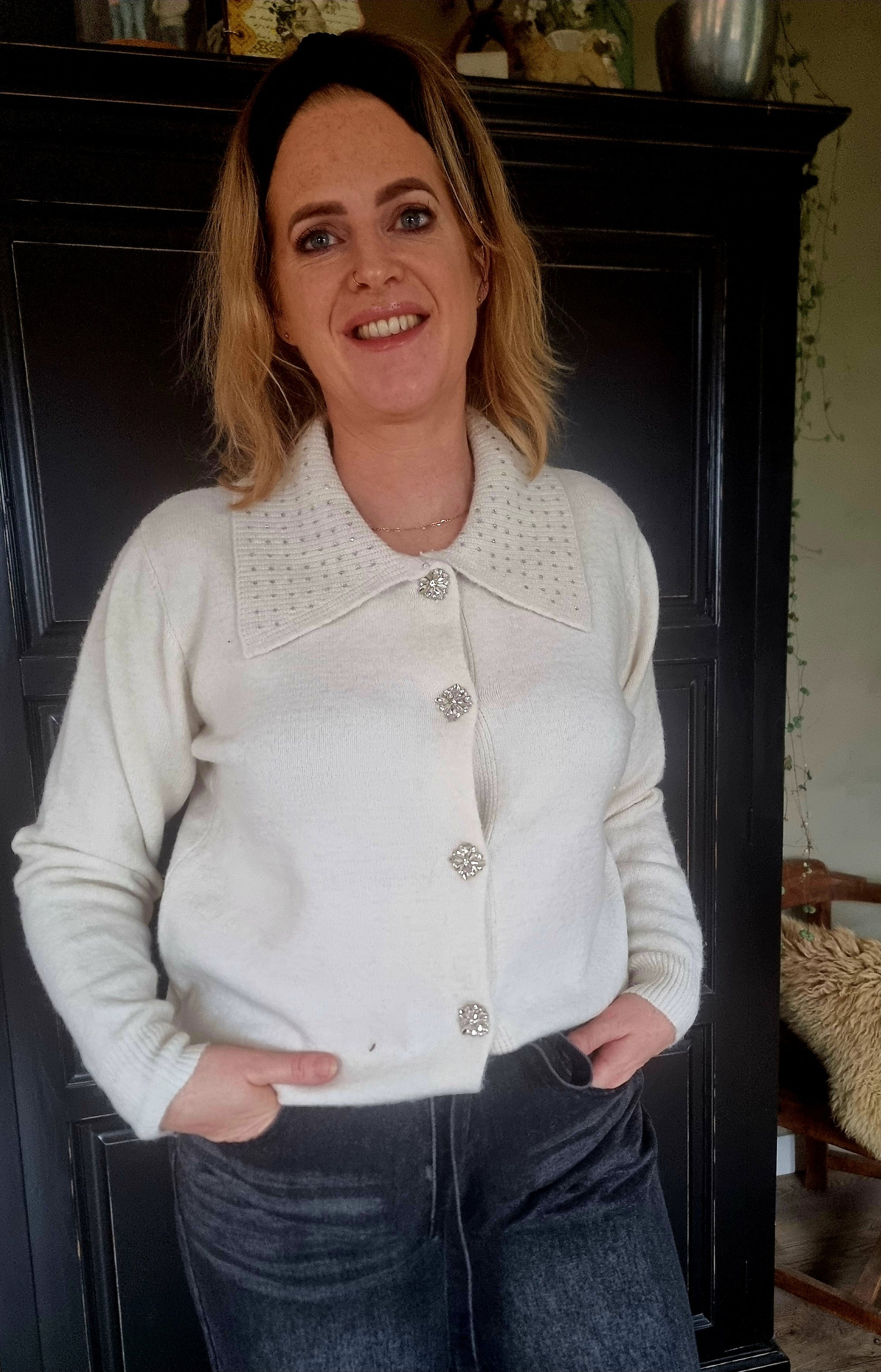 Heel mooie winterwit! Met mooie strassteentjes.